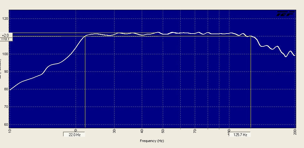 | Frequency Response* | –3 dB: approx. 22 Hz-125 Hz (useful output reportedly below 10 Hz in room) |